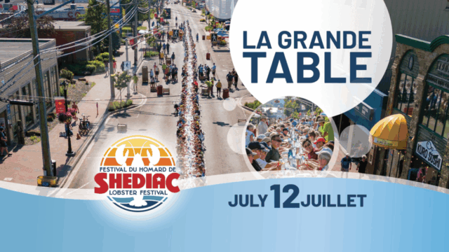 An unforgettable experience that will appeal to all your senses. Picture an abundantly friendly gathering for a feast where the crisp salt-air perfume of the Shediac Bay tickles your nose as you savour the regional delicacy at the very heart of our festival, the famous Shediac lobster. Surrounded by the warmth of friends, family, and a community who, like you, are grateful to reunite and connect. You will be awestruck as you look up from your meal as you notice the monumental scale of our table spread out onto Shediac’s Main Street, which will be closed in your honour, we are convinced that the unparalleled visual element of this event will be most spectacular! You won’t believe your eyes.